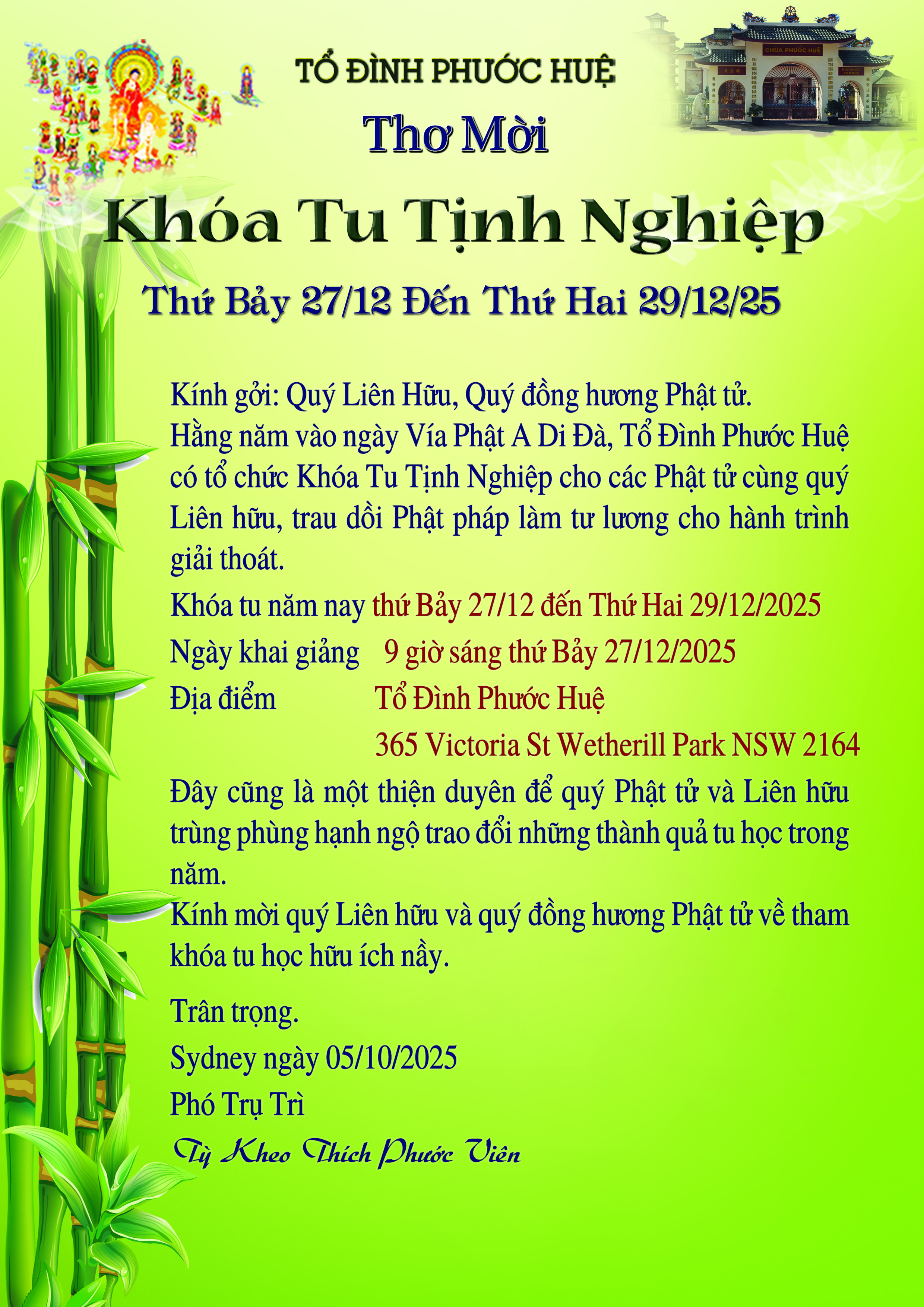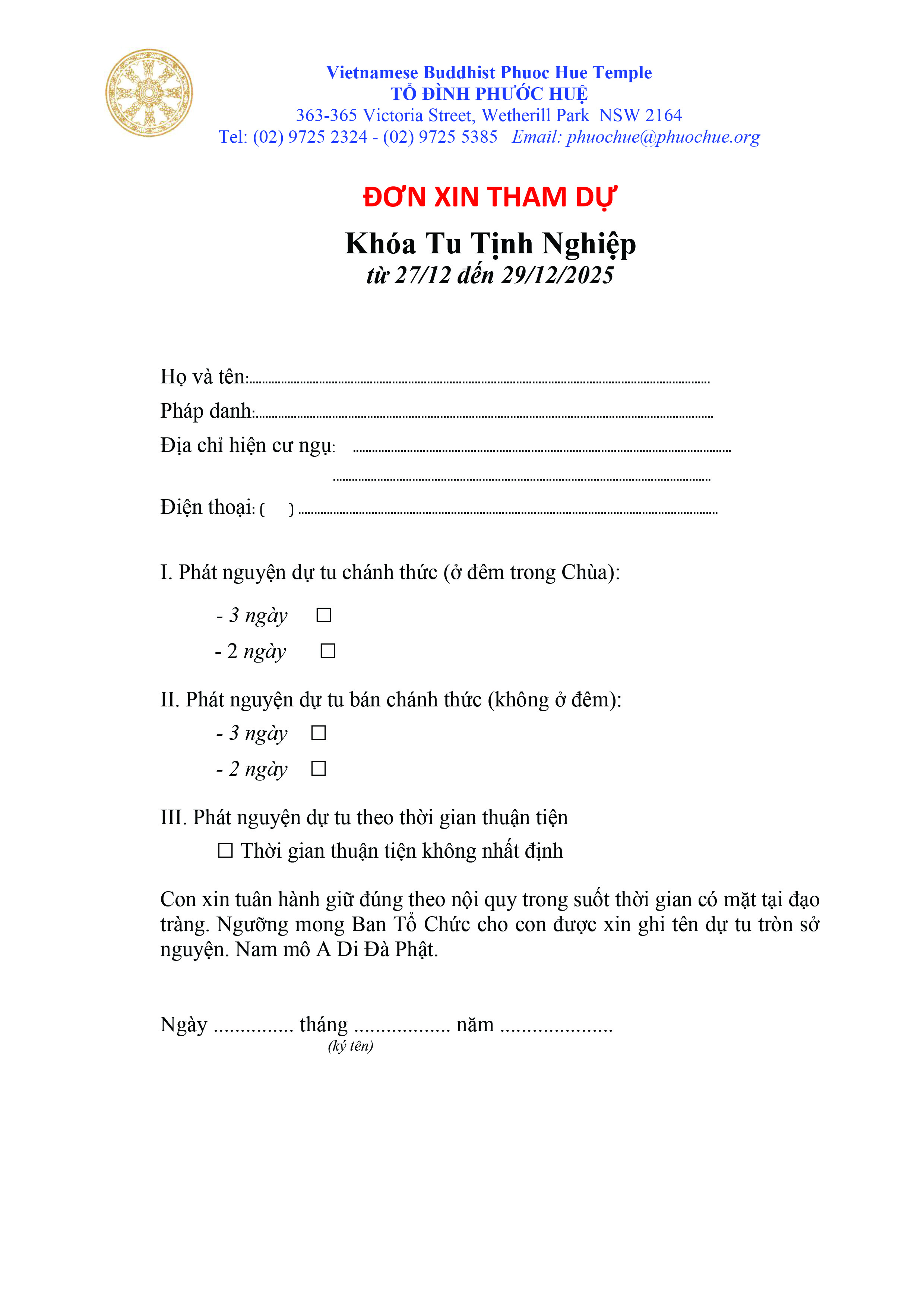 Phone: (02) 9725 2324, Fax: (02) 9725 5385, Email: phuochue@phuochue.org