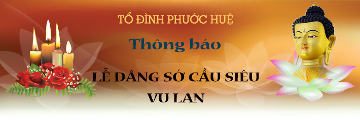Trân trọng kính mời: Quý Đồng hương Phật tử tham dự Lễ Dâng Sớ cầu siêu Vu lan cho cửu huyền thất tổ, chư hương linh ký tự nơi Tổ đình Phước Huệ, ký cốt nơi bảo tháp Xá lợi Phật; chư tiên linh, hương linh quá cố, chư chiến sĩ anh linh, đồng bào nhân loại tử nạn, oan hồn uổng tử, thập loại cô hồn và các thai nhi, thiếu nhi quá vãng được sớm siêu sanh thoát hóa. Nguyện cầu âm siêu dương thới. Khóa lễ được tổ chức: Thời gian: 18 giờ 30 (nhằm ngày Rằm tháng 7 Âl) Ngày: Tối thứ Sáu 28/08/2014 Địa điểm: Tổ đình Phước Huệ Xin liên lạc văn phòng Tổ đình Phước Huệ; điện thoại (02)97252324 để biết thêm chi tiết. Kính nguyện kiết tường Sydney, ngày 07/08/2015 BAN TỔ CHỨC |