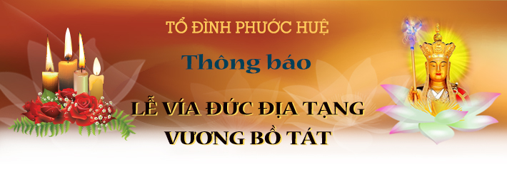 Nam mô Bổn Sư Thích Ca Mâu Ni Phật Trân Trọng Kính mời quý đồng hương, Phật tử.Trân trọng kính mời: Quý Đồng hương Phật tử; đến tham dự Lễ Vía Đức Địa Tạng Vương Bồ Tát Tại: